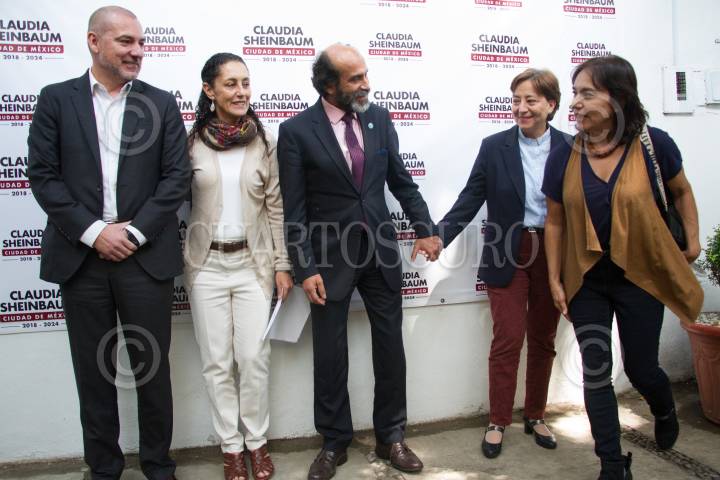 CIUDAD DE MÉXICO, 26SEPTIEMBRE2018.- Claudia Sheinbaum, jefa de Gobierno Electa se reunió con Crispim Moreira, de la FAO, a su salida ofrecieron una conferencia de prensa en la casa de transición. FOTO: VICTORIA VALTIERRA /CUARTOSCURO.COM