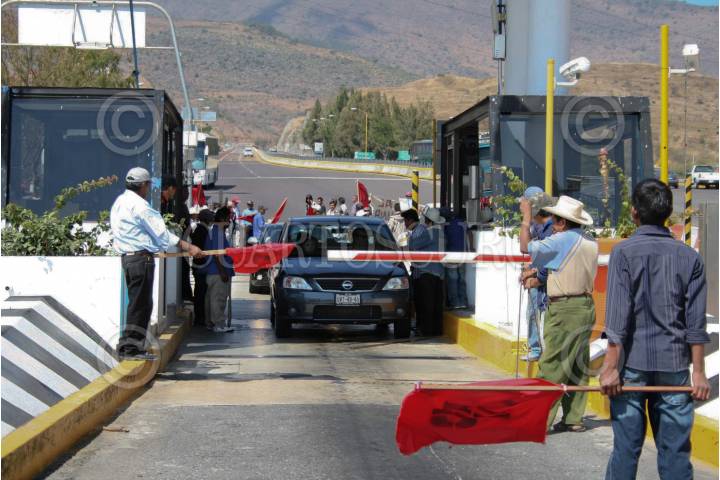 CHILPANCINGO, GUERRERO, 28ENERO2009.- Campesinos e indígenas pertenecientes al Frente de Defensa Popular (FDP) tomaron la caseta de cobro "Palo Blanco" en la Autopista del Sol donde dieron paso libre a cientos de automovilistas a cambio de una cooperación voluntaria. FOTO: OSCAR ALVARADO/CUARTOSCURO.COM