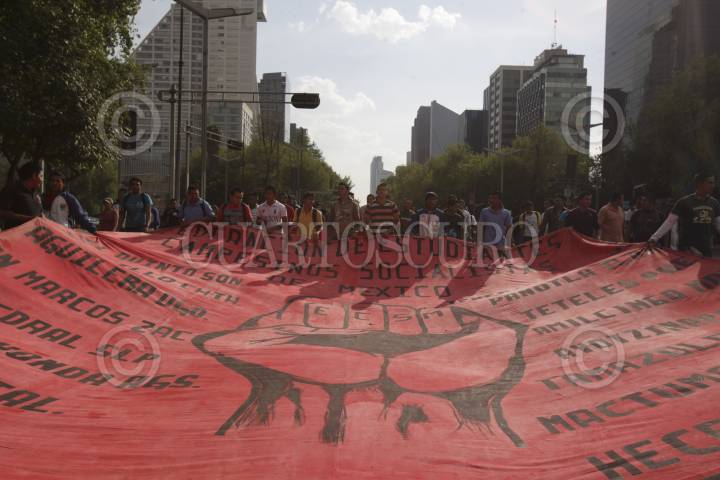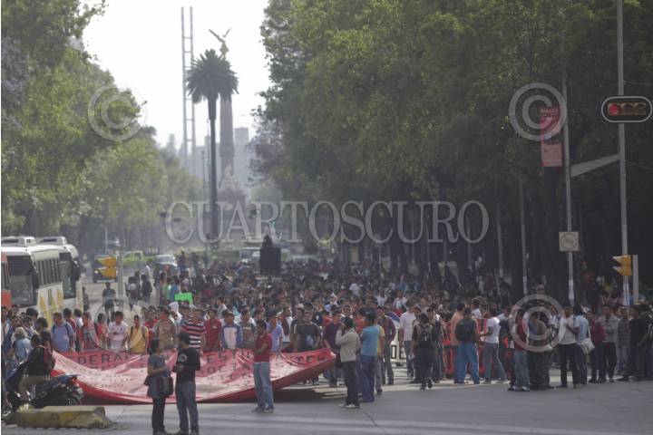 MÉXICO, D.F., 20ABRIL2012.- Alumnos de diferentes Normales Rurales, pertenecientes a la Federacion de Estudiantes Campesinos Socialistas de México, (FECSM), se manifestaron en avenida Reforma para protestar por las resoluciones del caso de sus compañeros asesinados en una manifestación en Chilpancingo Guerrero. FOTO: JUAN PABLO ZAMORA /CUARTOSCURO.COM