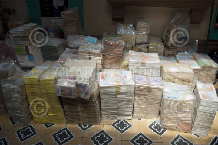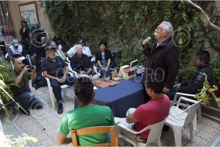 MÉXICO, D.F., 23ABRIL2012.- Raúl Álvarez Garín, miembro del Comité 68, y estudiantes de la Federación de Estudiantes Campesinos Socialistas de México (FECSM), durante la entrega de 15 mil libros que el comité donó a las Normales Rurales del País. FOTO: ADOLFO VLADIMIR/CUARTOSCURO.COM