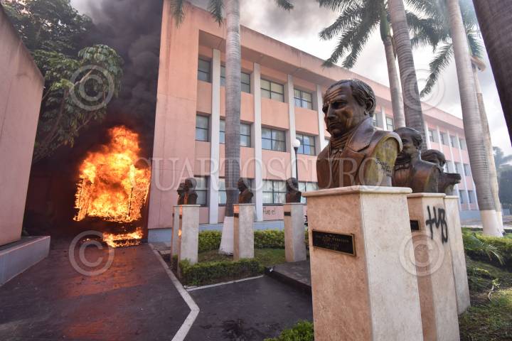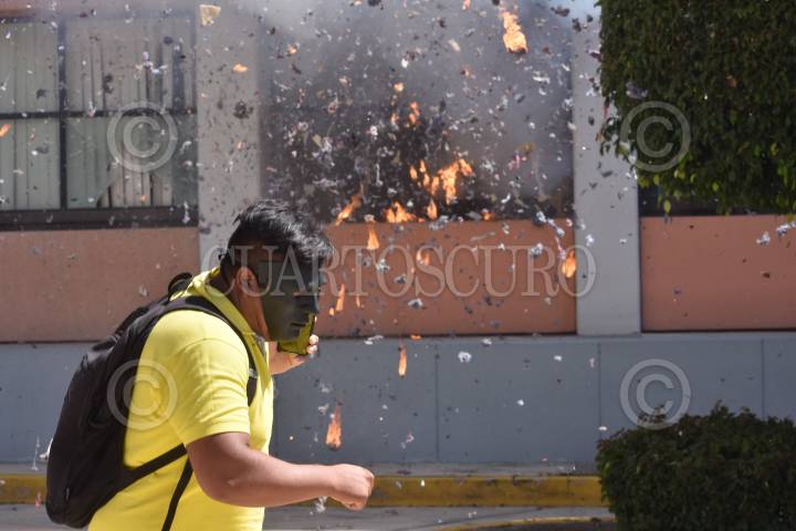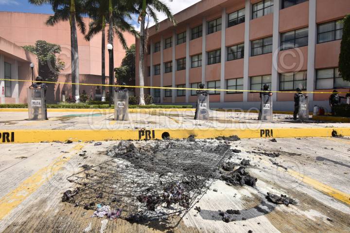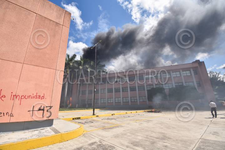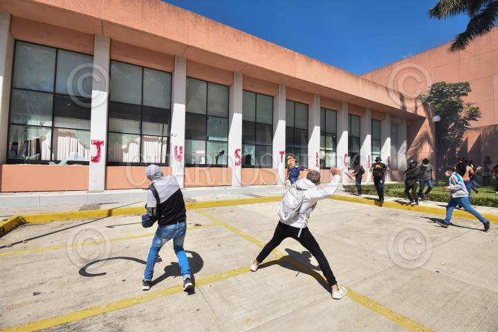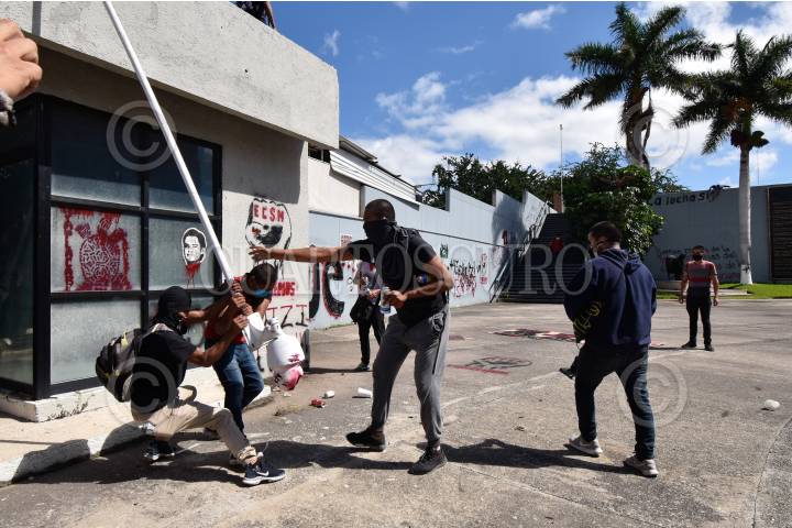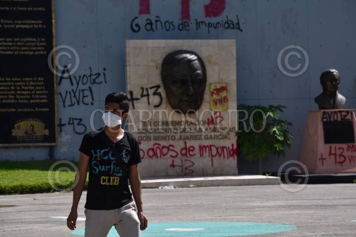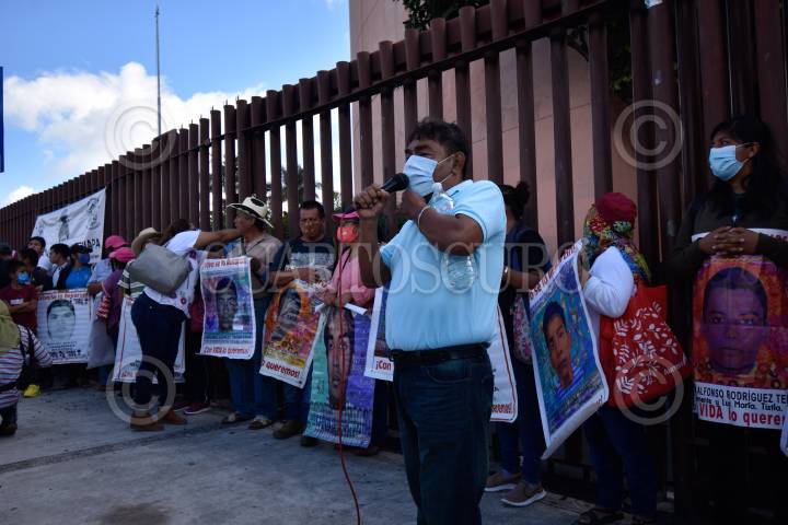 Padres de los 43 normalistas de Ayotzinapa desaparecidos hace seis años y estudiantes de la Federación de Estudiantes Campesinos Sociales de México (FECS) se manifestaron en el Congreso local para pedir justicia y la presentación con vida de sus compañeros, al finalizar el mitin los jóvenes causaron destrozos en el inmueble.