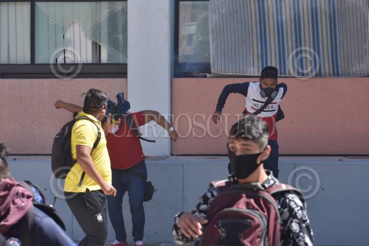 CHILPANCINGO, GUERRERO, 11FEBRERO2008- Estudiantes de la normal rural de Aytozinapa acompañados de integrantes de la Federacion de Estudiantes Campesinos Socialistas de Mexico (FECSM) realizaron una marcha por las principales calles de la capital del estado, al conmemorarse el decimo aniversario del desalojo violento que sufrieran del zocalo de la ciudad el 11 de febrero de 1998 a manos de policias del estado, exigiendo un alto a la represion social y estudiantil por parte del gobierno del estado, la entrega del 100% de plazas, solucion a sus demandas del pliego petitorio y respeto al sistema de internado de dicha normal, entre otras demandas. FOTO:OSCAR ALVARADO/CUARTOSCURO.COM