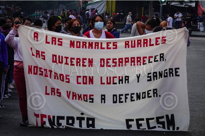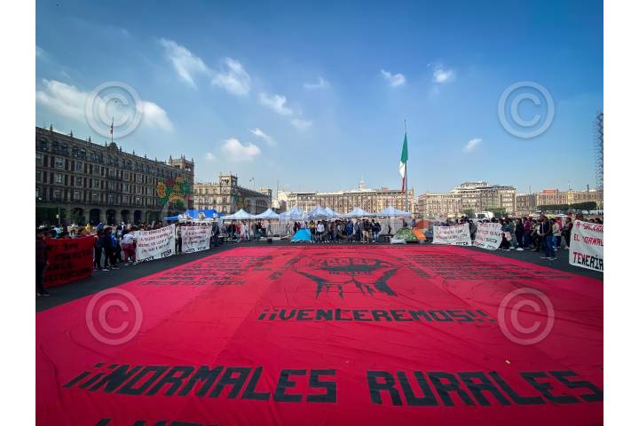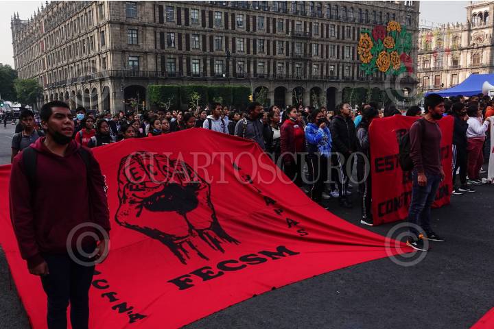 Miembros de diversas escuelas Normalistas de manifestaron a las afueras de Palacio Nacional.