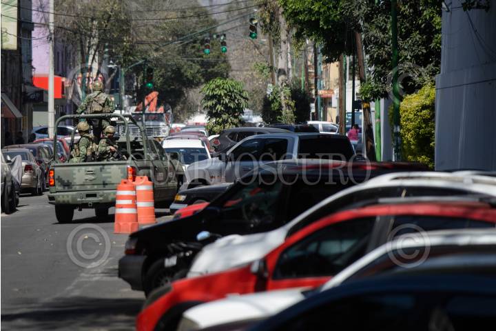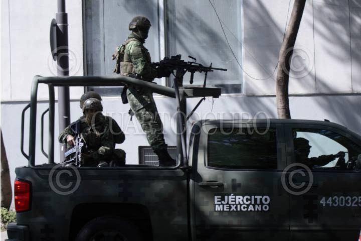 Poca actividad de elementos del ejército mexicano en las inmediaciones de la Fiscalía Especializada en materia de Delincuencia Organizada (FEMDO), en donde podría ser trasladado, Gerardo Soberanes Ortiz, alias "G1", señalado como presunto operador de la familia Cabrera Sarabia, y quién fue detenido está mañana en El Cortijo, Durango, después de un operativo coordinado por la Secretaría de la Defensa Nacional.