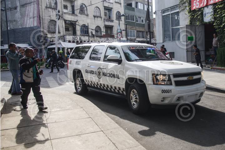 Llegada de un convoy de la Guardia Nacional a la Fiscalía Especializada en materia de Delincuencia Organizada (FEMDO) en donde fue ingresado Gerardo Soberanes Ortiz, alias "El G1", señalado como probable operador de la familia Cabrera Sarabia, y quién fue detenido está mañana en El Cortijo, Durango, después de un operativo coordinado por la Secretaría de la Defensa Nacional.