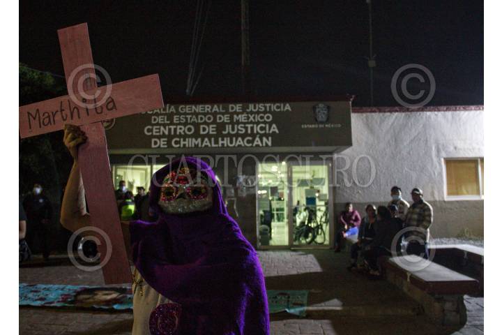 Frente a la Procuraduria de Justicia de Chimalhuacán, Lidia Florencio madre de Diana víctima de feminicidio y colectivas feministas, realizaron una procesión y colocaron una mega ofrenda en memoria de todas las muertas del Estado de México.