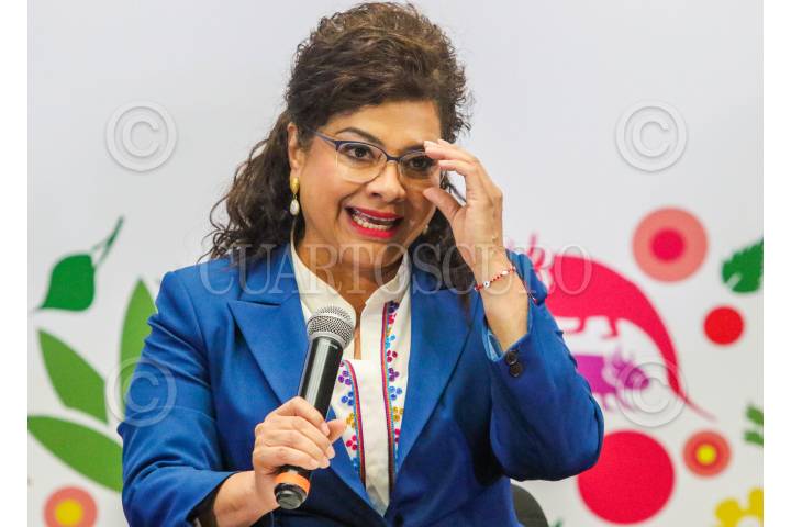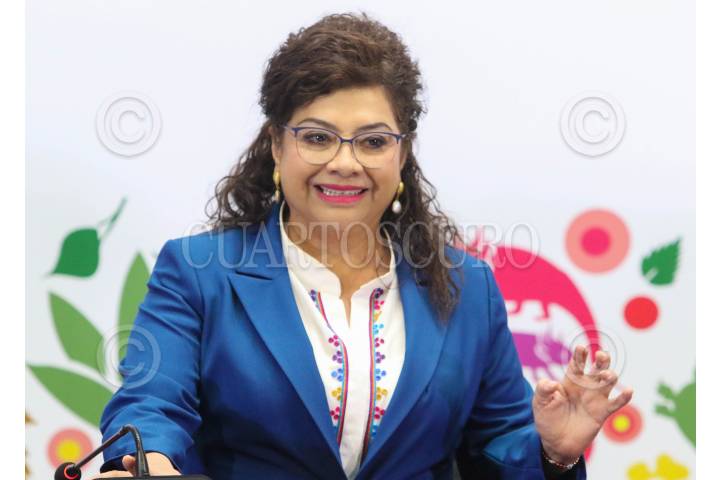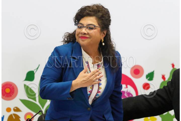 CIUDAD DE MÉXICO. 17SEPTIEMBRE2025.- La fiscal Capitalina en la conferencia de prensa de la jefa de Gobierno de la ciudad, Clara Brugada, esta tarde en el Palacio del Ayuntamiento. FOTO: VICTORIA VALTIERRA/CUARTOSCURO.COM