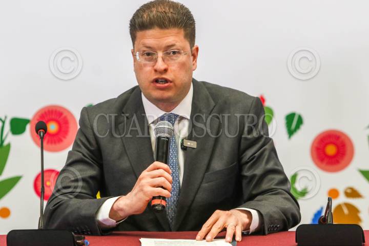 CIUDAD DE MÉXICO. 16DICIEMBRE2024.- La jefa del gobierno de la Ciudad, Clara Brugada Molina, el secretario Pablo Vázquez y Ulises Lara en el sEgundo Informe de Seguridad de la Capital, que se realizó Enel Palacio del Ayuntamiento. FOTO: VICTORIA VALTIERRA/CUARTOSCURO.COM