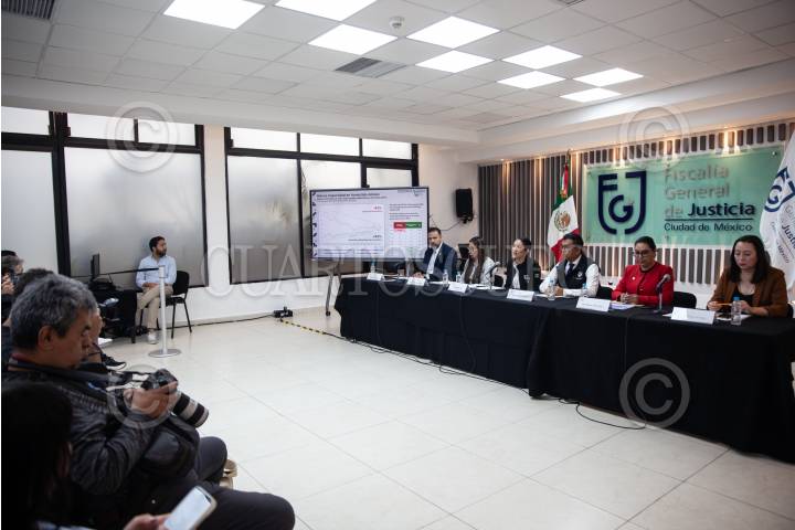 CIUDAD DE MÉXICO, 02MARZO2025.- Jorge Emilio Iruegas Álvarez, coordinador de investigación estratégica; Elizabeth Hernández Hernández, coordinador general de investigación territorial; Bertha Alcalde Luján, fiscal general de justicia; Alfonso Mendoza Ramírez, jefe general de la policía de investigación; Severiana Ortega López, coordinadora de investigación forense y Gemma Guadalupe Chávez Durán, coordinadora General de Investigación de Género durante la conferencia de prensa en la Fiscalía General de Justicia con en tema de Combate a la impunidad de Homicidio doloso. FOTO: ANDREA MURCIA /CUARTOSCURO.COM