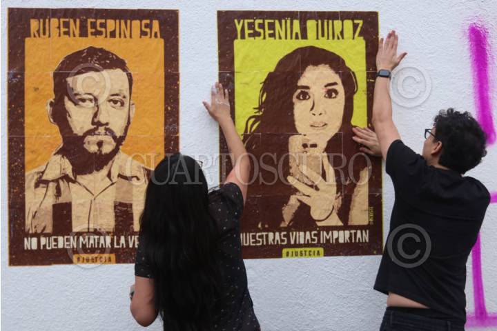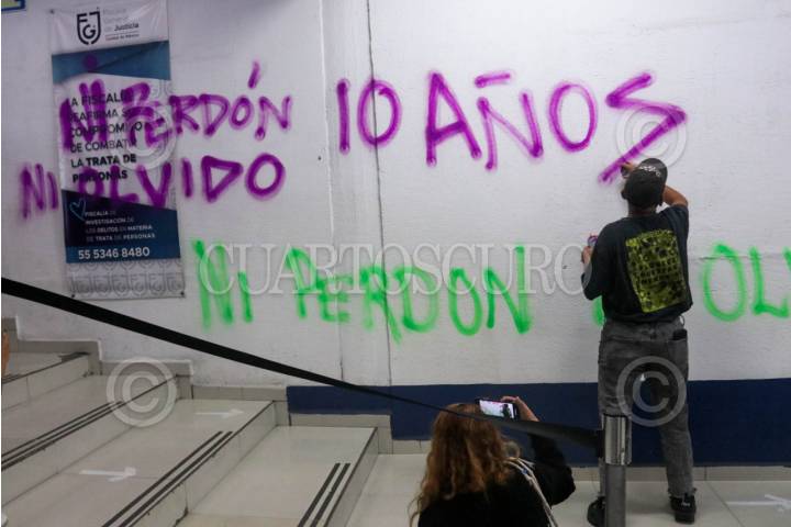 CIUDAD DE MÉXICO, 31JULIO2025.- Colectivos protestaron en la Fiscalía General de Justicia de la CDMX a una década del multihomicidio de Mile Martín, Yesenia Quiroz, Nadia Vera, Rubén Espinoza y Alejandra Negrete en la colonia Narvarte. Durante el evento estuvieron presentes familiares y amigos. FOTO: GRACIELA LÓPEZ/CUARTOSCURO.COM