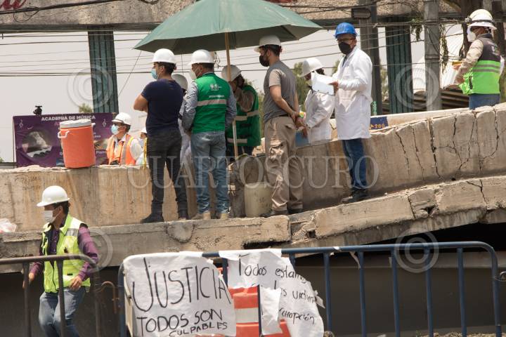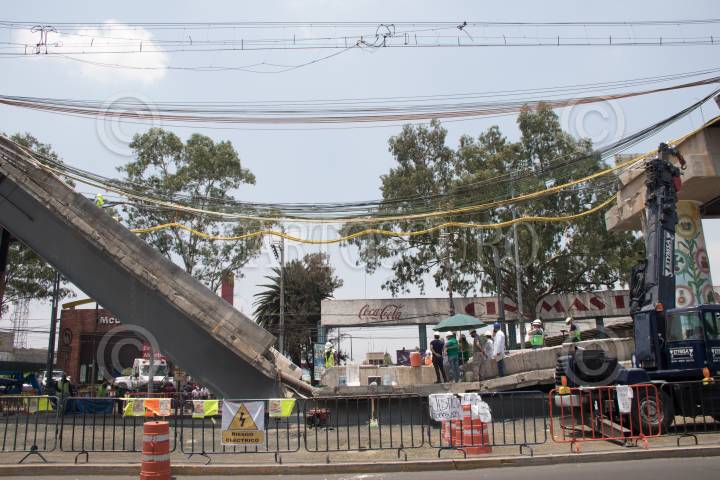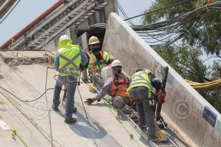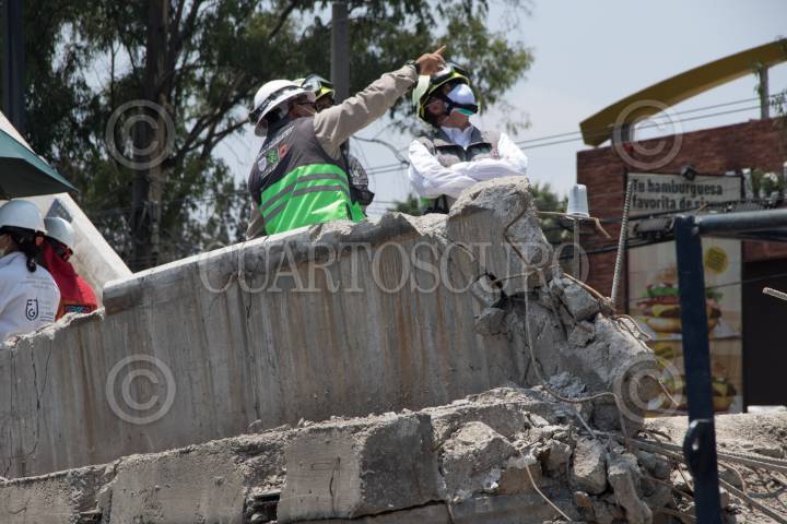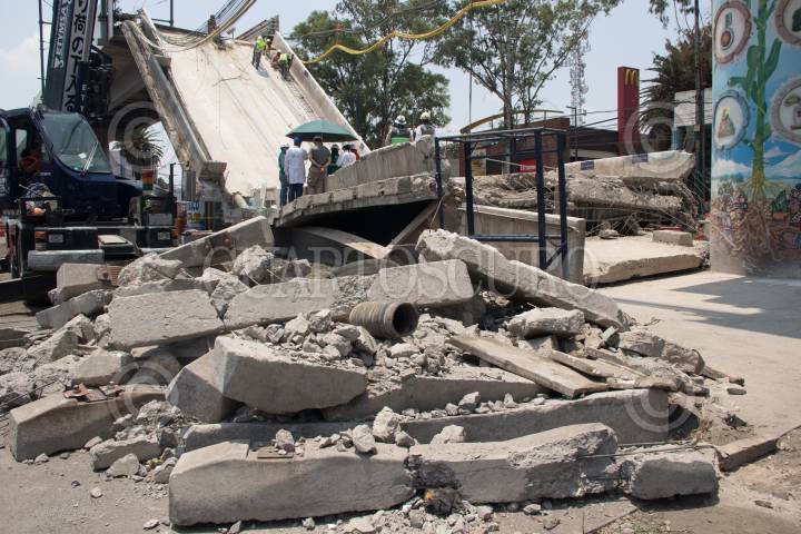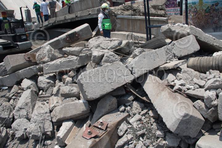 Remoción de escombros de la zona colpsada de la línea 12 del Metro