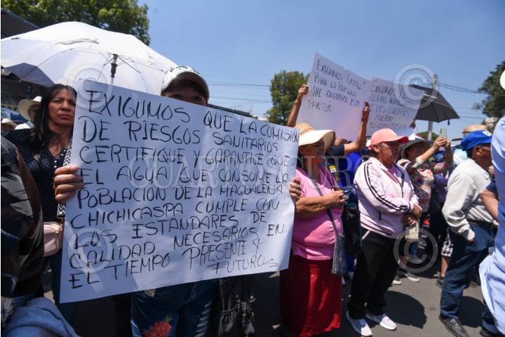 TOLUCA, ESTADO DE MÉXICO, 16 MAYO 2025.- Pobladores de la Magdalena Chichicaspa, municipio de Huixquilucan, se manifestaron en las instalaciones de la FGJEM, exigiendo que se clausure la operación de un panteón irregular en el paraje La Viga. Su funcionamiento ya fue denunciado, pero las autoridades han hecho caso omiso. Temen por la contaminación de manantiales que se encuentran en la zona y afectaciones ambientales irreversibles. También exigen que sean retirados inmediatamente los cuerpos que han sido enterrados en el lugar. FOTO: CRISANTA ESPINOSA AGUILAR /CUARTOSCURO.COM