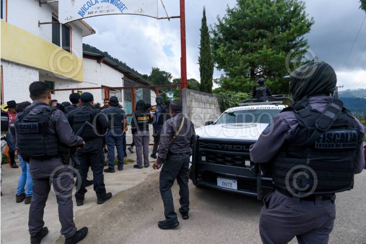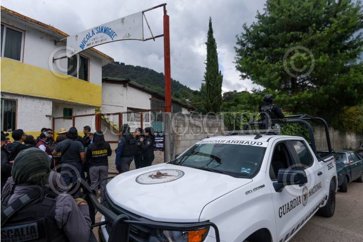 TEJUPILCO, ESTADO DE MÉXICO, 25JULIO2025.- Elementos de la FGJEM y Servidores Públicos en el rango asegurado en Lodo Prieto en Tejupilco en donde fueron robados 60 puercos que habían sido asegurados durante el Operativo Liberación y serían entregados a la comunidad. FOTO: CRISANTA ESPINOSA AGUILAR/CUARTOSCURO.COM