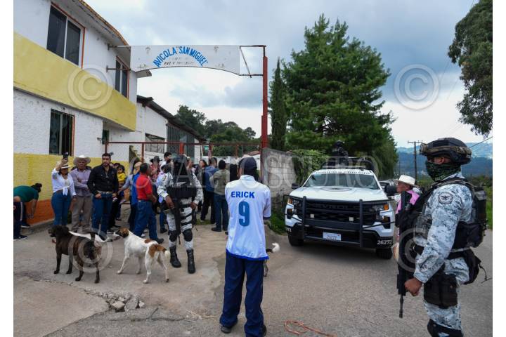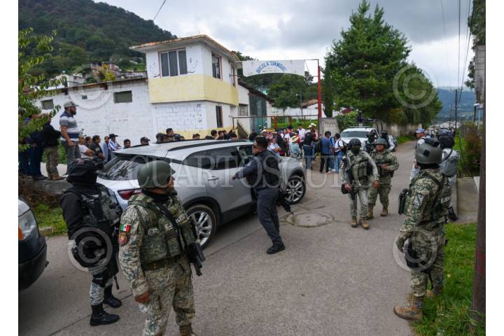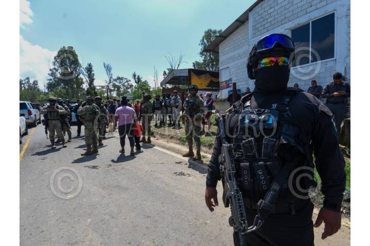 TEJUPILCO, ESTADO DE MÉXICO, 25JULIO2025.- Elementos de la FGJEM y el Ejército resguardan la entrega de pollos incautados en la Granja Maxi Pollo en Tejupilco, fueron entregados 1170 pollos a la población, estos animales fueron incautados al crimen organizado durante el Operativo Liberación, realizado en la zona sur del Estado de México, de manera anticipada se dispuso de lo incautado a favor de la población. FOTO: CRISANTA ESPINOSA AGUILAR/CUARTOSCURO.COM