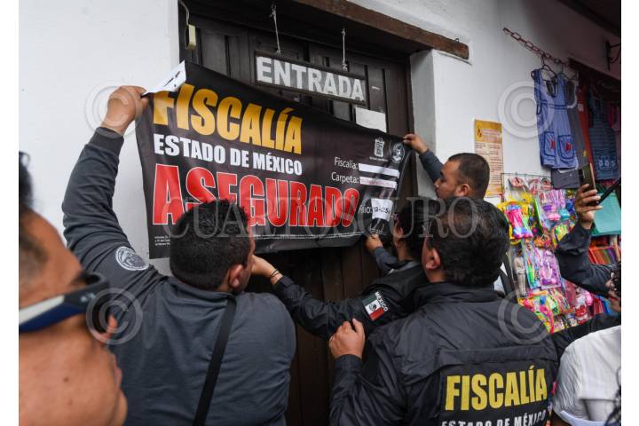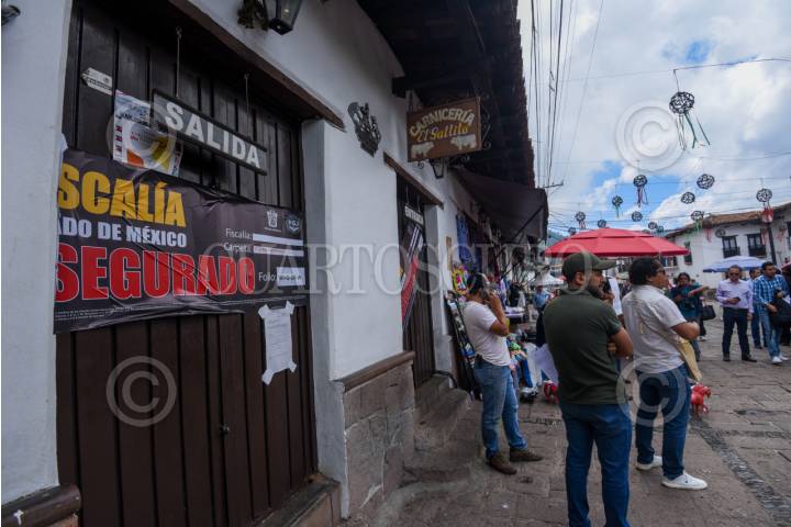 SULTEPEC, ESTADO DE MÉXICO, 25JULIO2025.- Aspectos de la fachada de la carnicería el Gallito en Sultepec con sellos de aseguramiento por parte de la FGJEM durante la Operación Liberación que se realizó en la zona sur del Estado de México. FOTO: CRISANTA ESPINOSA AGUILAR /CUARTOSCURO.COM