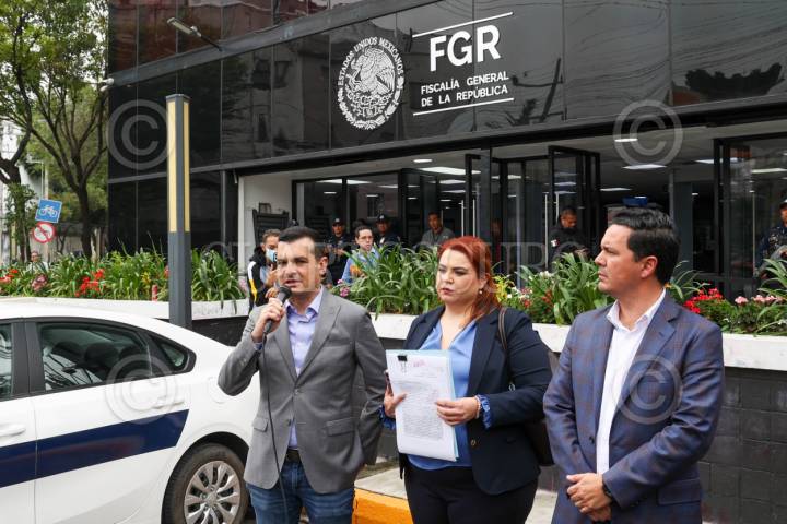 CIUDAD DE MÉXICO, 17JULIO2025.- Jorge Triana Tena, vocero del PAN; Elisa Maldonado, dirigente del PAN en Coahuila, y Gerardo Aguado, diputado federal del PAN, acudieron a la Fiscalía General de la República para presentar una denuncia contra Ricardo Mejía Berdeja, ex subsecretario de Seguridad, por supuestos vínculos con el crimen organizado. FOTO: MOISÉS PABLO/CUARTOSCURO.COM