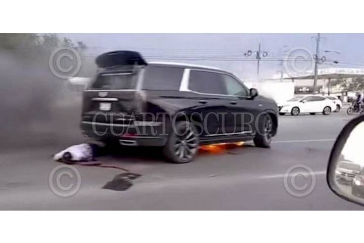 REYNOSA, TAMAULIPAS, 04AGOSTO2025.- Ernesto Vázquez Reyna, delegado de la Fiscalía General de la República (FGR) en Tamaulipas, murió la tarde de este lunes en un ataque directo perpetrado sobre la avenida Hidalgo, frente al hotel Engrei, alrededor de las 18:00 horas. En videos que circulan en redes se ve la camioneta en llamas cuando llega otra camioneta a rematar a los tripulantes. FOTO: CORTESÍA/CUARTOSCURO.COM