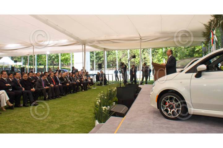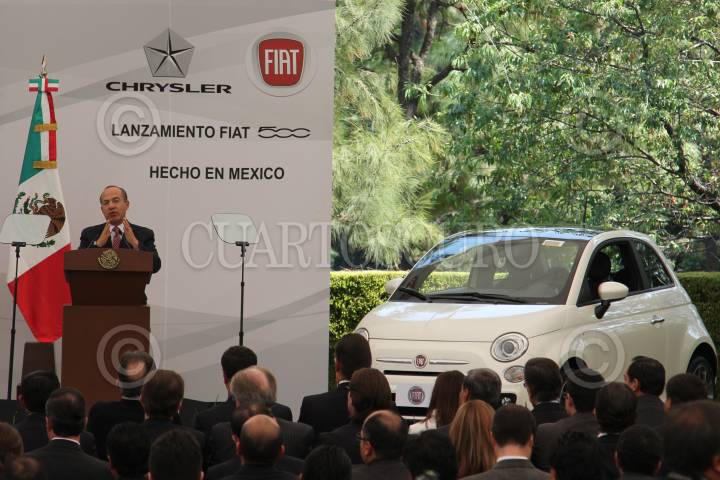 MÉXICO, D.F., 07MARZO2011.- Felipe Calderon Hinojosa, Presidente de México, realizó el lanzamiento del automóvil "FIAT 500" luego de anunciar que dicho vehículo se fabricara en las plantas de México. FOTO: ENRIQUE ORDÓÑEZ/CUARTOSCURO.COM