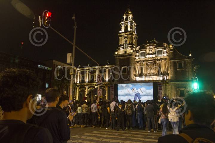 MÉXICO, D.F., 27FEBRERO2014.- Con la proyección al aire libre del filme de animación "Se levanta el viento", del director Hayao Miyazaki, en la Plaza de Santo Domingo, fue inaugurado el Festival Internacional de Cine UNAM (FICUNAM), FOTO: ISAAC ESQUIVEL /CUARTOSCURO.COM