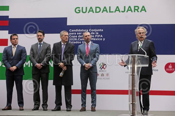ZAPOPAN, JALISCO, 29ENERO2017.- Jorge Aristóteles Sandoval Díaz Gobernador del Estado, Decio de María Presidente de la Federación Mexicana de Futbol y Jorge Vergara Dueño del Club Guadalajara, encabezaron este medio día en el Estadio Akron el protocolo de entrega de convenios de la candidatura conjunta para ser sede de la copa del mundo FIFA 2026 Canadá, México y Estados Unidos. FOTO: FERNANDO CARRANZA GARCIA / CUARTOSCURO.COM