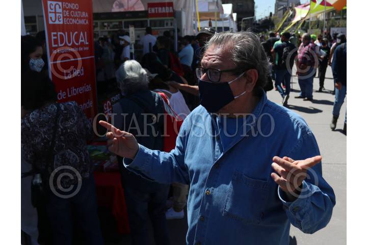 Paco Ignacio Taibo II, director del fondo de Cultura Económica, previo a charla en la XXI Feria Internacional del Libro en el Zócalo.
