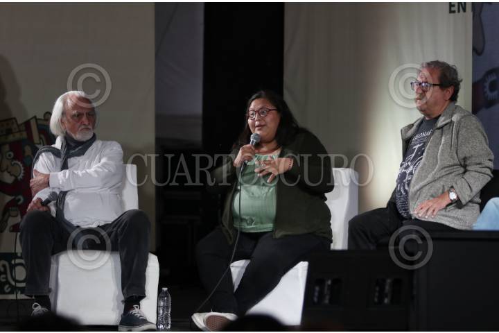 Citlali Hernández, senadora del grupo parlamentario Morena, durante la charla “La nueva y la vieja izquierda” como parte de las acrividades de la Feria Internacional del Libro en el Zócalo.