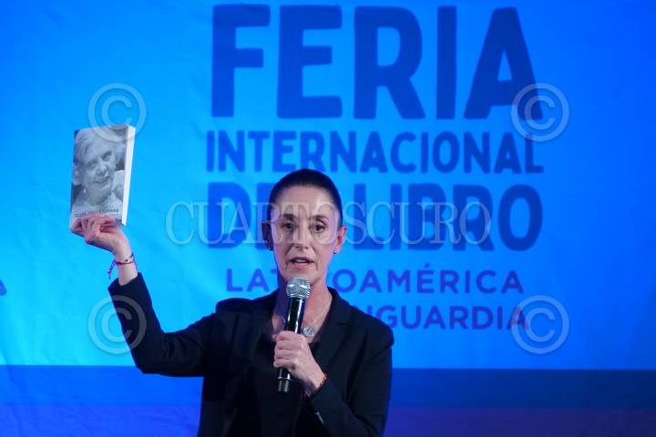 Claudia Sheinbaum durante la inauguración de la FIL en el Zócalo.