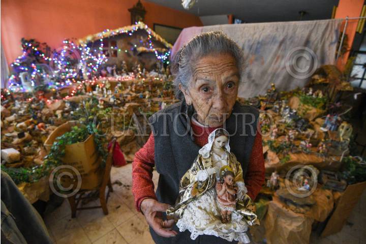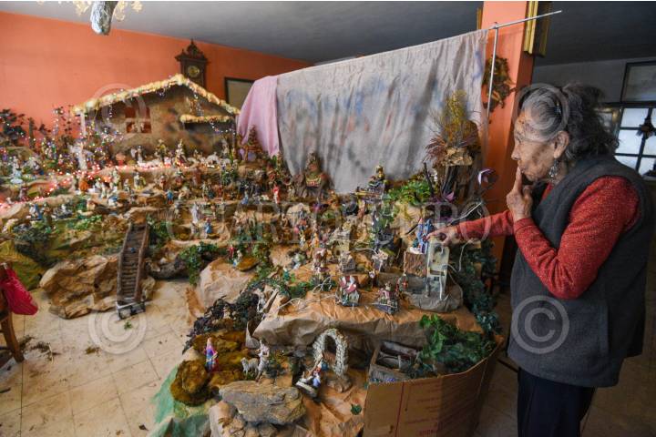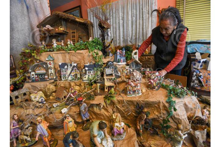 TOLUCA, ESTADO DE MÉXICO, 18DICIEMBRE2024.- Rosalia Muciño tiene 67 años instalando su nacimiento con más de 1000 piezas, se llega a tardar casi un mes para instalarlo, a lo largo de sus 93 años de vida se ha dedicado a juntar diversas figuras para su nacimiento, algunas de ellas de varios estados de la República Mexicana así como de otros países, ella les realiza ropa a los muñequitos y elabora las casitas que instala; trabaja sola en la instalación de su gran nacimiento ya que es importante esta tradición de manera personal y la cual le gusta compartir con los visitantes que se dan cita para admirarlo, abre sus ventanas y desde ahí se pude admirar, ubicado en la avenida de los Maestros en la colonia Doctores en Toluca. FOTO: CRISANTA ESPINOSA AGUILAR /CUARTOSCURO.COM