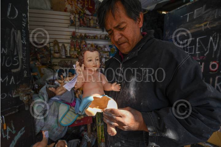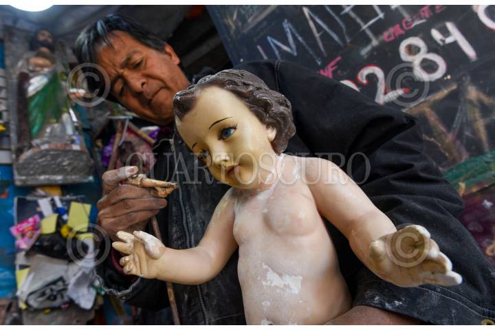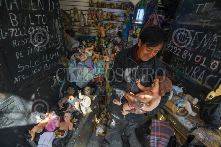 TOLUCA, ESTADO DE MÉXICO, 22ENERO2025.- Durante estas fechas es muy común observar la reparación de imágenes del Niño Dios para la celebra del 2 de febrero Día de la Candelaria, en diversos talleres de la ciudad de Toluca se realiza la restauración de estas imágenes, Yair Rico tiene más de 26 años dedicándose a este trabajo, en estas fechas repara entre 6 y 7 imágenes de diferentes tamaños, le llegan de diferentes tamaños y muchas de ellas van en pedazos y tiene que armarlos nuevamente, algunos los materiales que trabaja son de yeso, resina, madera, porcelana, fibra de vidrio, entre otros. FOTO: CRISANTA ESPINOSA AGUILAR /CUARTOSCURO.COM