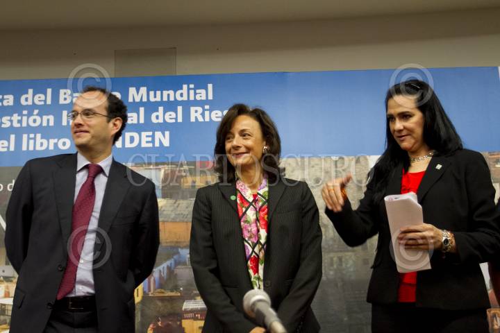 MÉXICO, D.F., 18JULIO2012.- Darío Luna Pla, titular de la Unidad de Seguros, Pensiones y Seguridad de la Secretaria de Hacienda y Crédito Publico, Gloria Grandolini, Directora del Banco Mundial para México y Colombia, Laura Gurza Coordinadora General de Protección Civil y Bubem Hofliger Topete, Director General de Fondo de Desastres Naturales, durante la Firma de Asistencia Técnica con el Banco Mundial en Materia de Gestión Integral del Riesgo y Presentación del Libro del FONDEN, en la Secretaría de Gobernación. FOTO: GUILLERMO PEREA /CUARTOSCURO.COM