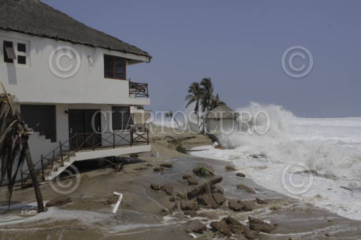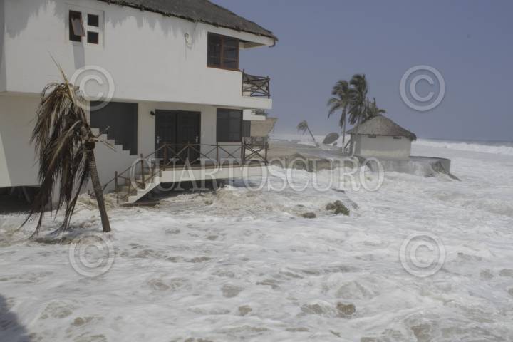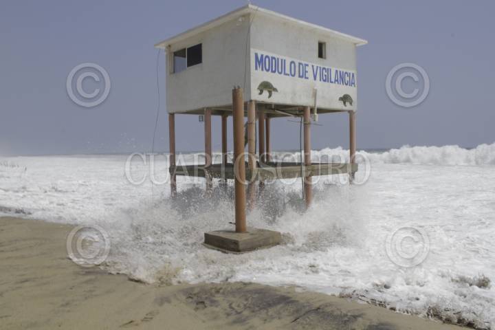 COYUCA DE BENÍTEZ, GUERRERO, 03MAYO2015.- El fenómeno Mar de Fondo con olas de hasta más de diez metros de altura afectó las costas guerrerenses y arrasó con el balneario de Playa Azul, La Barra de Coyuca y Mogotes, en el municipio de Coyuca de Benítez, donde hubo más 40 heridos, restaurantes, casas y bungalows arrasados. Unas 190 familias fueron evacuadas a albergues provisionales de El Carrizal, donde se habilitó la capilla del lugar, y un domicilio particular en San Nicolás, donde elementos de Protección Civil estatal y municipal brindan la atención a los damnificados. El alcalde de Coyuca de Benítez, Ramiro Ávila Morales dio a conocer que están trabajando en la solicitud de declaratoria de zona de desastre a efecto de que el Fonden pueda bajar recursos para atender a los damnificados. FOTO: BERNANDINO HERNÁNDEZ /CUARTOSCURO.COM