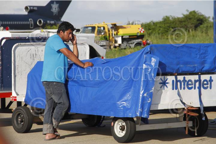 ACAPULCO, GUERRERO, 18SEPTIEMBRE2013.- Dos carros que utilizan las aerolíneas para realizar el transporte de equipaje en el Aeropuerto Internacional de Acapulco. Versiones no oficiales, hicieron mención que presuntamente llevaban los cuerpos de 6 turistas que se dirigían a vacacionar al puerto y murieron durante un deslave causado por la tormenta tropical “Manuel”, mismos que serán llevados a Toluca FOTO: CUARTOSCURO.COM