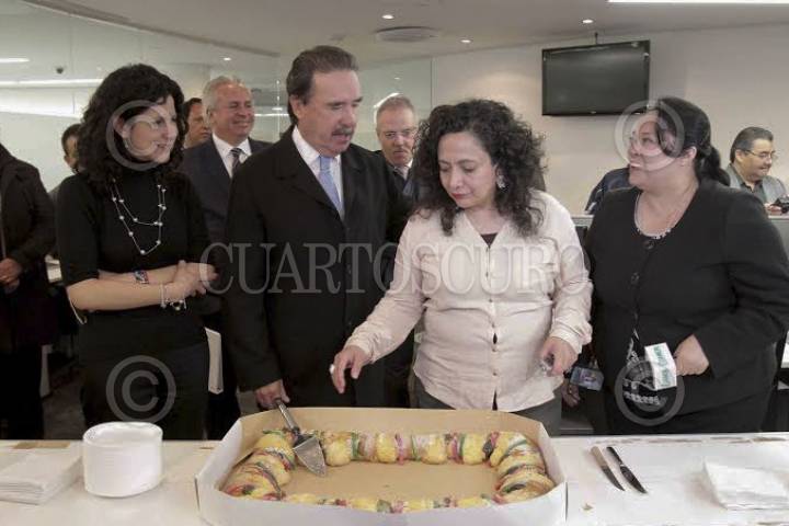MÉXICO, DF., 06ENERO2014.- Emilio Gamboa Patrón, coordinador del PRI en el Senado, partió la tradicional Rosca de Reyes en donde anunció que el próximo 30 y 31 de enero se llevará a cabo la Cuarta Reunión Plenaria del Grupo Parlamentario del PRI en Mérida, Yucatàn. FOTO: CUARTOSCURO.COM