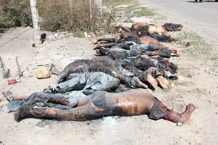 CHILAPA, GUERRERO, 27NOVIEMBRE2014.- Imagen de los 11 cuerpos encontrados en el municipio de Chilapa, en el estado de guerrero, los cuales se encontraron decapitados y con un mensaje presuntamente adjudicándose los asesinatos al crimen organizado. FOTO: CUARTOSCURO.COM