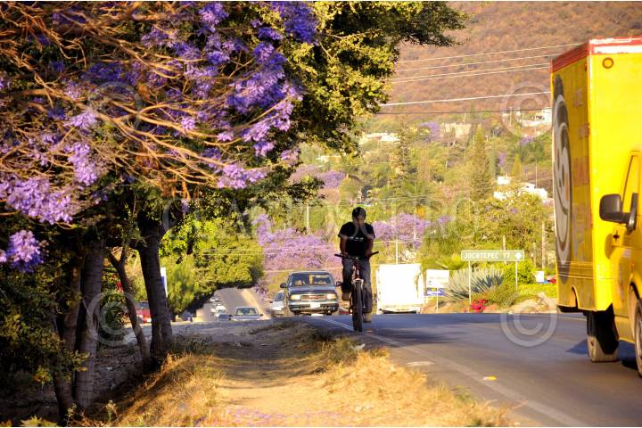CHAPALA, JALISCO, 09MARZO2009.- Las Jacarandas y los arboles de Eritrinas o pico de tucán como se dicen vulgarmente, encienden el aire como si fueran antorchas y anuncian la primavera al igual que los morados tapetes de flores de jacarandas, ya están en la carretera de la ribera de Chapala. FOTO:MARIA DI PAOLA BLUM/CUARTOSCURO.COM