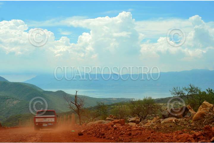 LA MANZANILLA, JALISCO;28JUNIO2009.- Constriccion de la carretera que cruza desde el lago Chapala y se dirige hacía el Sur en dirección de La Manzanilla FOTO:MARIA DI PAOLA BLUM/CUARTOSCURO.COM