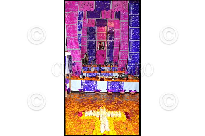 AJIJIC,JALISCO 02deNOVIEMBRE2009.- El Centro Cultural Ajijic en el marco de las celebraciones del día de muertos, dedicó este año su altar principal al maestro Manuel Medeles Romero quien destacó en el pueblo por haber organizado a lo largo de su vida una escuela de música de la ribera de Chapala, dedicando sus mejores años a la enseñanza y formación de jóvenes músicos. El altar estuvo a cargo de su esposa la maestra Teresa Medina Corona. FOTO:MARIA DI PAOLA BLUM/CUARTOSCURO.COM
