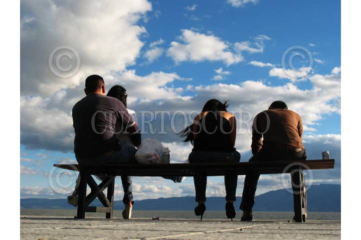 AJIJIC, JALISCO;17ENERO2010.- Apesar de que no fueron concluidas las obras para la restauración del muelle de Ajijic jóvenes principalmete mujeres que usan tacones sin importarles el díficil camino acuden a este sitio turistico para reunirse con sus amigos el fin de semana. FOTO:MARIA DI PAOLA BLUM/CUARTOSCURO.COM