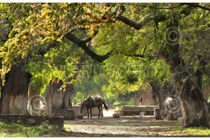 AJIJIC, JALISCO, 01JULIO2010.- Desde los años 60's en este pueblo se acostumbraba a criar caballos y rentarlos a los visitantes, sin embargo hoy en día solo dos familias del pueblo se quedaron dedicándose a eso en el conocido fraccionamiento de La Floresta, famoso por sus caminos arbolados, ofrecen los paseos al pueblo, rumbo al lago o en el cerro a 100 pesos la hora, Empezando desde las 8 de la mañana hasta la 6 de la tarde. FOTO:MARIA DI PAOLA BLUM/CUARTOSCURO.COM