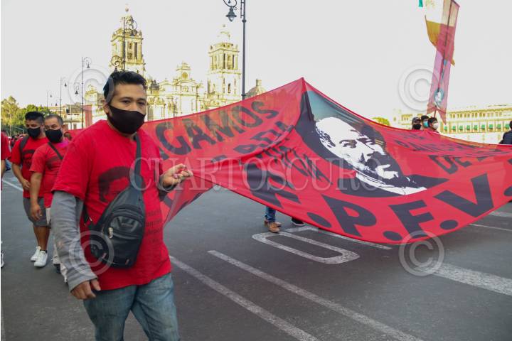 El Frente Popular Francisco Villa, marchó al Zócalo de la Ciudad en demanda d vivienda.