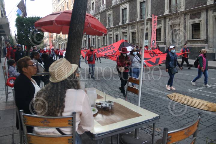 Mujeres del Frente Popular Francisco Villa se manifestaron frente a Palacio Nacional por la violencia hacia la mujer