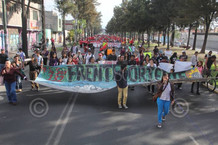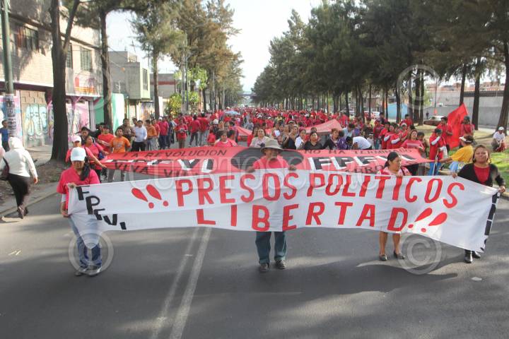 MÉXICO, D.F., 17JUNIO2013.- Integrantes del Frente Popular Francisco Villa Independiente, marcharon de la avenida Tlahuac hacia el reclusorio oriente, en apoyo a los siete jóvenes detenidos por granaderos de la SSP-DF durante los disturbios del pasado 10 de Junio en el zócalo capitalino. FOTO: SAÚL LÓPEZ /CUARTOSCURO.COM
