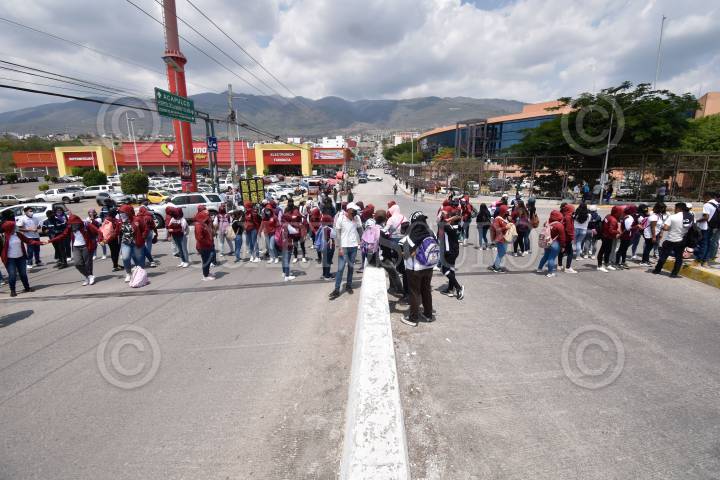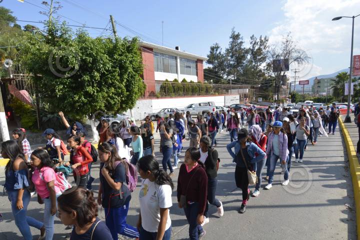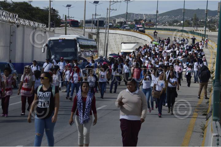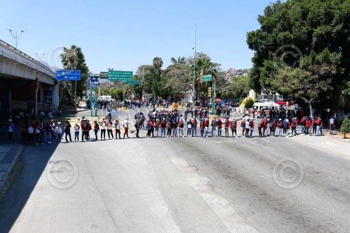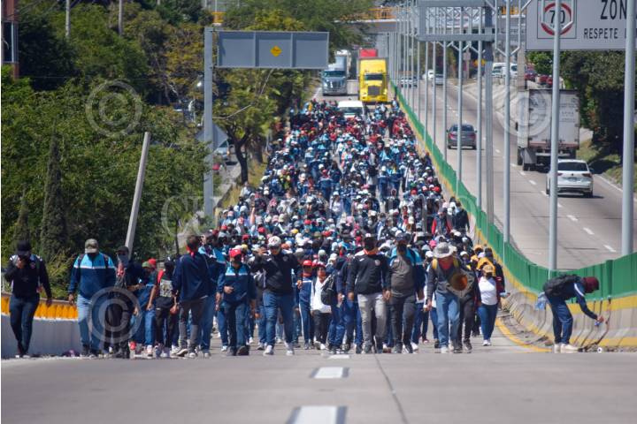 Integrantes del Frente Unido de Normales Públicas del Estado de Guerrero (FUNPEG) exigen con marcha y bloqueo mil 30 plazas para los egresados de estas escuelas.