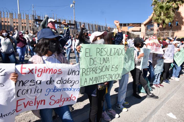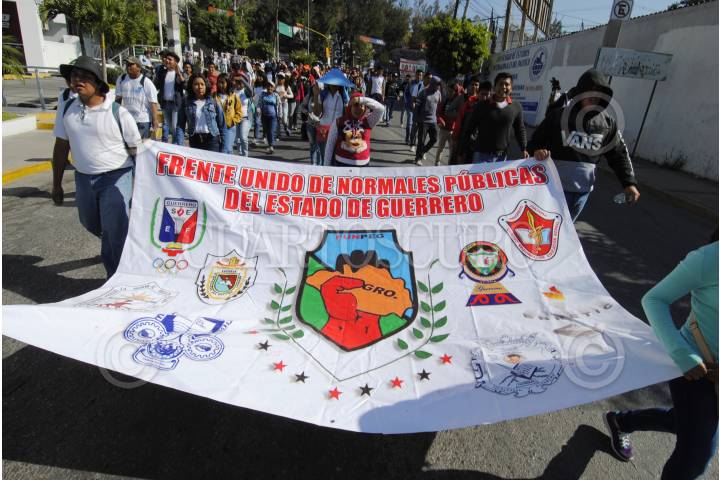 Integrantes del Frente Unido de Normales Públicas del Estado de Guerrero (FUNPEG) marcharon y cierran los accesos al Recinto Oficial del Poder Ejecutivo (Palacio de Gobierno), o (Palacio de Gobierno), ante la falta de entrega de material didáctico para las academias de todos los grados; entre sus demandas también exigen el tema de garantía de plazas para la academia de cuarto grado, que está a punto de egresar.