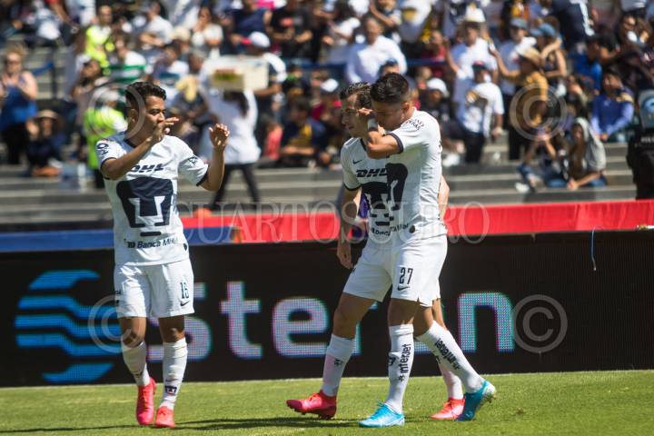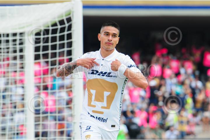 Fabio Álvarez (Pumas) intenta rematar a gol, en una de las pocas oportunidades que tuvieron los universitarios, en el partido que perdieron 1-0, con penal de último minuto.