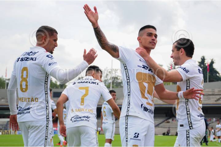 Fabio Álvarez celebra la primera anotación de los Pumas