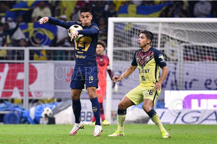 Fabio Álvarez (Pumas) controla el balón con el pecho en el partido de vuelta ante el América, en el cual los universitarios se impusieron 3-1.