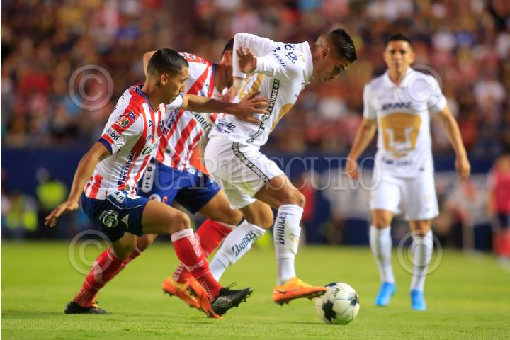 Fabio Álvarez (PUMAS) no pudo crear jugadas de peligro ante el Atlético de San Luis.