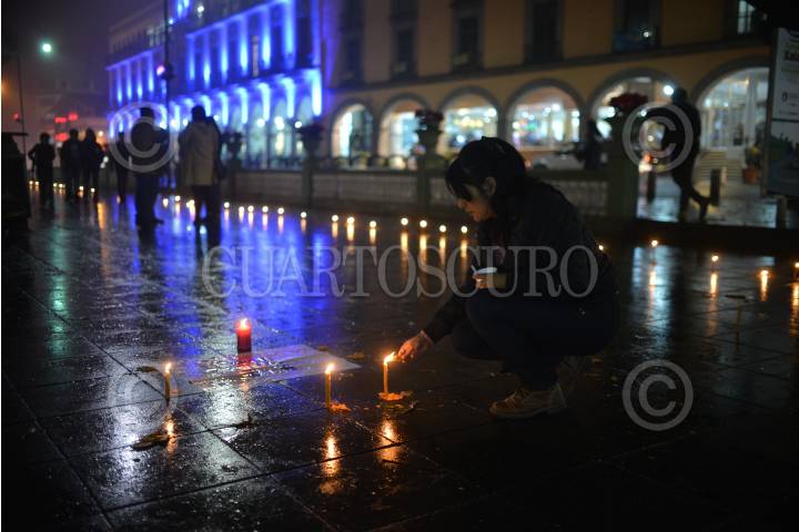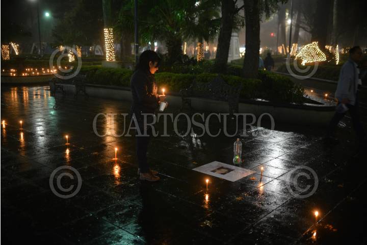 XALAPA, VERACRUZ 08DICIEMBRE2017.- La noche de ayer Fabiola Pensado conmemoró el cumpleaños de su hijo Yosimar Pensado desaparecido desde el 2014. La madre colocó veladoras y la imagen de su hijo en el parque Juárez en el marco del Día del Niño Desaparecido. FOTO: ALBERTO ROA / CUARTOSCURO.COM