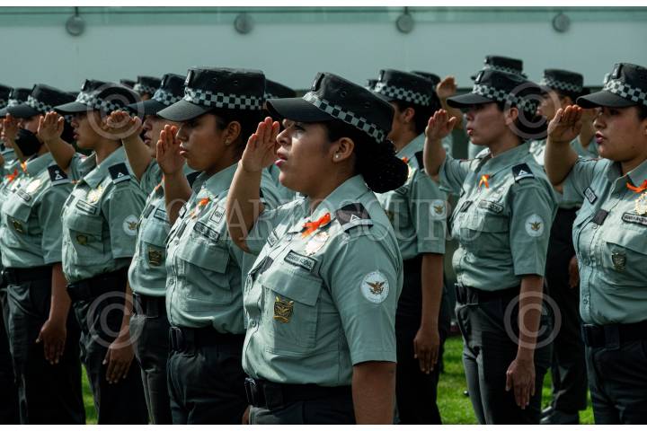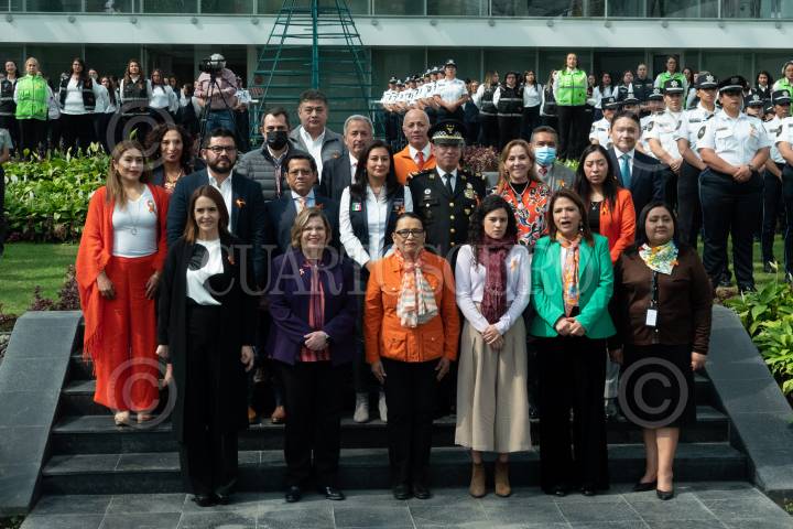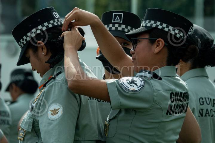 Mujeres adscritas a la Guardia Nacional durante la ceremonia de inauguración de la campaña 16 Días de Activismo contra la Violencia hacia las Mujeres en la sede de la SSPC.